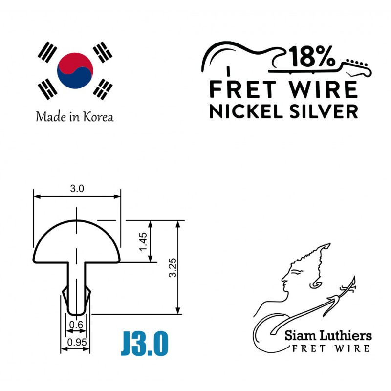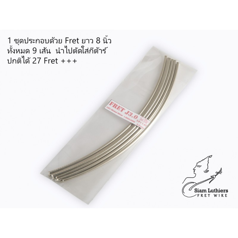- 1 ชุดจะประกอบไปด้วย ลวด Fret ยาว 8 นิ้ว จำนวน 9 ท่อน ซึ่งถ้านำไปใช้กับกีต้าร์ปกติ จะสามารถตัดได้ประมาณ 27 Fret